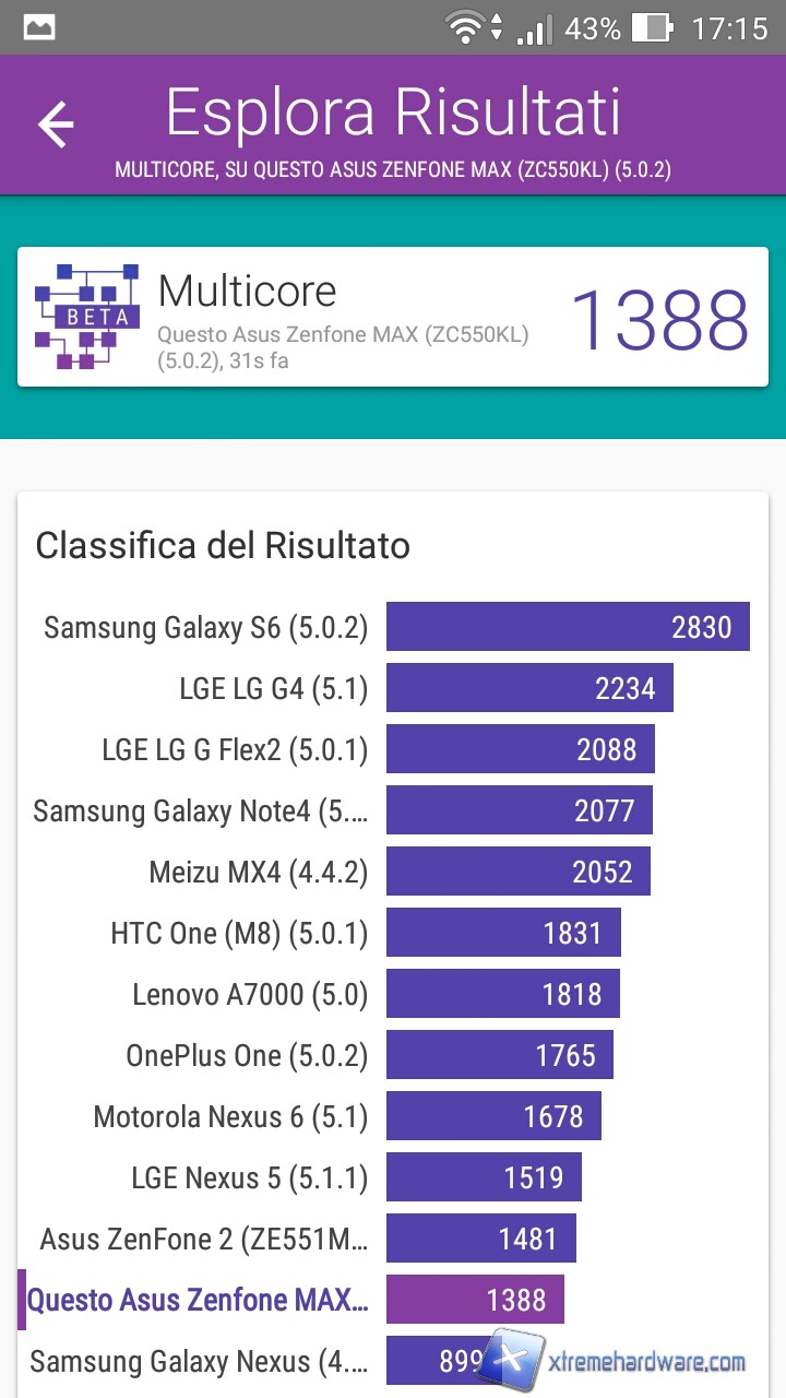 Vi lasciamo qui sotto i punteggi di vari benchmark in modo da poter confrontare, magari, le prestazioni dello Zenfone Max con il vostro attuale smartphone.